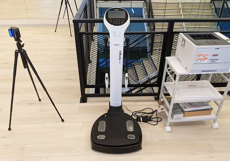 筋肉量・体脂肪・水分量など、他にも様々な分析ができる「体成分分析装置」です。