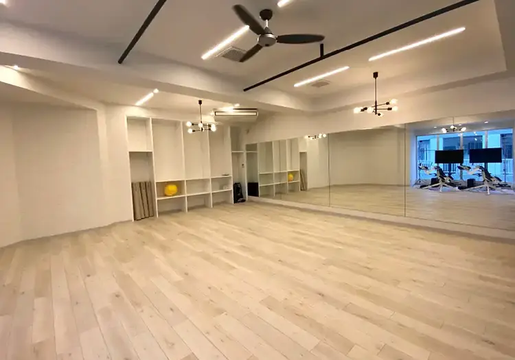 2階は壁に大きな鏡が特長の広々としたスタジオ。
